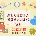 2022年6月12日 / 最終更新日時 : 2022年6月12日 事務局 セミナー・ワークショップ 楽しく使おう♪ 普段使いのオパ WS/講師:高三野晴美 日時: 2022年6月18日 @ 10:00 AM – 12:00 PM 場所: オンライン 詳しくはこちら ≫ お申込み・お問合せはこちら ≫